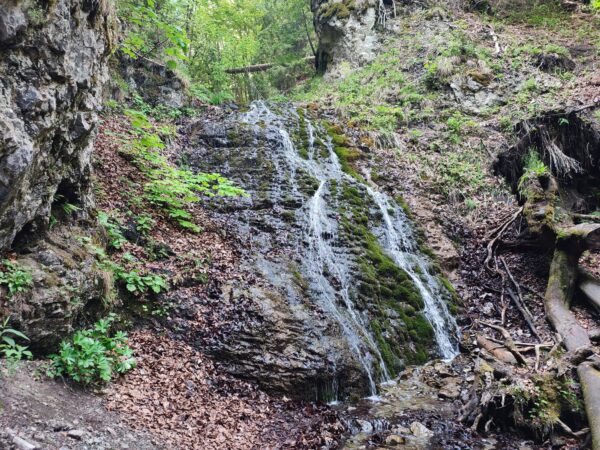 – Ak ešte máte trochu energie nazvyš a videli ste obidva vodopády, môžete pokračovať dolinou ďalej k náučnému panelu o „Lúkach“, od ktorého môžeme peši bez bicyklov pokračovať k Tiesňave za dierou (chodníčkom popri potoku), čím absolvujete aj celý náučný chodník.