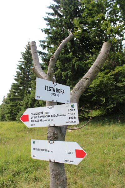 Trasa: Trasa začína v ružomberskej mestskej časti Nová Černová pri zastávke MHD „Čutkovská dolina“. Od zastávky sa vydáme smerom do Čutkovskej doliny po červeno značenom turistickom chodníku, ktorého sa budeme držať celú našu trasu. Pri zastávke, kde trasu začíname, sa nenachádza turistický smerovník, ten sa nachádza neďaleko pri hlavnej ceste. Preto je potrebné vybrať sa správnym smerom (mierne do kopca). V úvode Čutkovskej doliny, kde sa ešte nachádzajú rodinné domy, schádzame z cesty na chodníček za posledným domom na pravej strane. Z cesty odbočíme doprava na chodníček, ktorý nás poza dom a pomedzi kríky vyvedie na cestičku. V tomto mieste neodbočíme doprava ani doľava po ceste, ale pokračujeme rovno hore svahom popri stromoch. Dobre viditeľný chodníček nás vedie strmo stúpajúcim terénom k stožiaru vysokého napätia, kde si môžeme oddýchnuť a pokochať sa výhľadom na Ružomberok. Strmé stúpanie sa zmierni a my pokračujeme ďalej stále rovnakým smerom do kopca. Cestou sa môžeme pokochať výhľadmi na Starú Černovú a Hrboltovú. Na začiatku lesa začína krížová cesta, ktorá pozostáva z drevených rámikov upevnených v zemi. Bystrému oku neuniknú ani pozostatky starej krížovej cesty na stromoch, kde už zostali zväčša len čísla zastavení a krížiky. Lesná cesta nás vedie ďalej popri drevenom kríži a ďalších zastaveniach krížovej cesty. Pri trinástom zastavení sa nachádza drevená studnička „Malý Jarok“, kde sa môžeme ovlažiť. Vodu neodporúčame piť, pretože studnička len zvedie vodu z potôčika do žliabku. Neďaleko od studničky sa na križovatke zvážnic, pri ďalšom drevenom kríži, končí krížová cesta. V tomto mieste križujeme zeleno značenú cyklotrasu z Černovej do Ľubochne. Pri kríži sa nachádza lavička, ktorú môžeme využiť na prípadný oddych. Pokračujeme smerom, ako sme prišli ku krížu, mierne nahor po zvážnici a prichádzame k prameňu. Voda vyviera z kovovej rúrky v murovanej stienke a vteká do betónových napájadiel v zemi. Táto voda je pitná. Voda vyteká z vodojemu o niečo vyššie v lese, v čase veľkého sucha a v zime býva odstavená. Lesná cesta nás stálym stúpaním vedie cez les na veľkú lúku, na ktorej sa nachádza drevený senník (štál). V tomto mieste schádzame z cesty a vyberieme sa doprava po chodníčku hore lúkou. Na konci lúky pod lesom si môžeme vychutnať výhľad na Liptovskú kotlinu s okolitými horstvami. Chodníček sa po vstupe do lesa stočí doprava a prechádza popri ďalšom štále, za ktorým sa pozvoľne stočí doľava. Výrazný chodník zarezaný do strmého svahu pokračuje stále do kopca lesom, okrajom lúčneho svahu a znova lesom k ostrej pravotočivej zákrute. Tu je stúpanie najprudšie a chodník má skalnatý šmykľavý povrch, zväčša pokrytý starým lístím. V tomto mieste sa zvyčajne dosť šmýka aj pri výstupe, ale najmä pri zostupe. Za zákrutou si môžeme všimnúť pozostatky ďalších štálov, ktoré svedčia o tom že v minulosti sa tu hospodárilo. Chodník zarezaný v svahu nás dovedie na lúku, kde sa nachádza turistický smerovník a my sa z neho dozvedáme, že sa nachádzame na Tlstej hore (Krstej hore, ako ju nazývajú miestni). Vrchol Tlstej hory tvoria rozsiahle lúky, ktoré sa v minulosti využívali na hospodárske účely, o čom svedčia aj početné senníky, ktoré sa v rôznych zákutiach a okrajoch lúk nachádzajú. Naša trasa pokračuje ešte o niečo ďalej. Od smerovníka sa vydáme doľava a chodníček nás pomaly dovedie k miestu, kde je vybudovaný malý oltárik, kaplnka a sedenie. Na tomto mieste sa už oddávna konávali bohoslužby, ktoré spočiatku slúžili pre ľudí, ktorí na tieto miesta prichádzali kosiť a hrabať lúky. Na ich počesť sa tu každoročne stále konáva bohoslužba. Na početných lavičkách, ktoré sa tu nachádzajú, si môžeme oddýchnuť a pomaly sa vybrať späť rovnakou trasou, ako sme sem prišli. Pri zostupe si treba najväčší pozor dávať pri úvodnom zostupe od smerovníka na Tlstej hore a tiež pri záverečnom zostupe popod vedenie vysokého napätia.