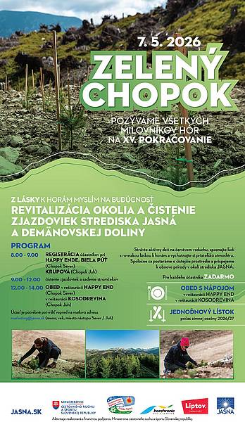Mountain lovers can once again look forward to the FIFTEENTH edition of the popular slope clean-up on the hillsides of Jasná, which takes place at the Jasná resort on Thursday, 7th May.