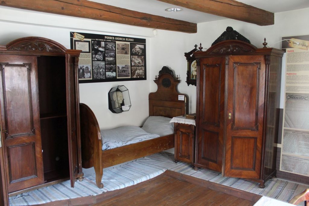 The memorial house is dedicated to the prominent Slovak nationalist Andrej Hlinka, who was born there. In the house we can see an exhibition about his life and work. There is a room with period furniture, Hlinka’s personal belongings and manuscripts. Here we can see, for example, his bed, breviary, and priestly robes. The exhibition is completed by information panels and a wax figure of Andrej Hlinka. Here we can learn a lot of information about his life, childhood, the humble conditions in which he grew up, his priestly vocation, but also about his political activities.
