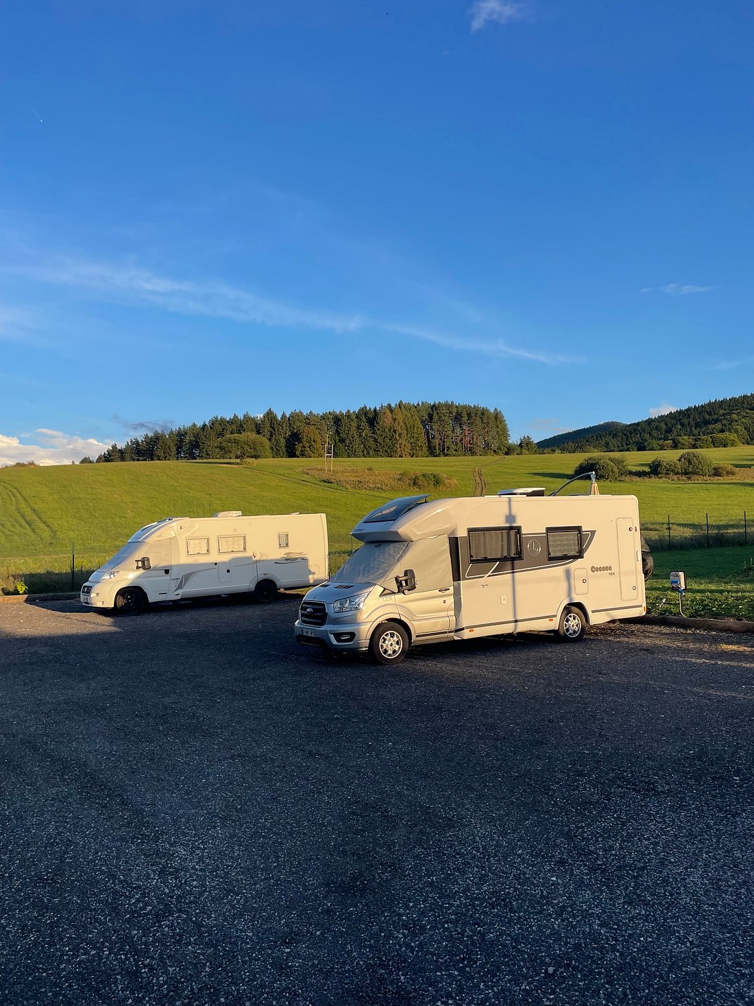 - Each place has the possibility of connecting to electricity (230 V) and water supply.