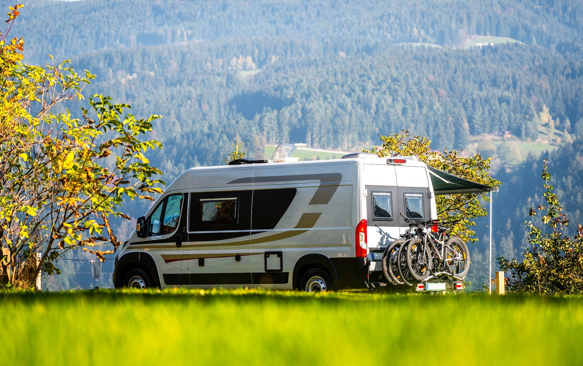 - Spacious grassy places for caravans, motorhomes and tents are available.