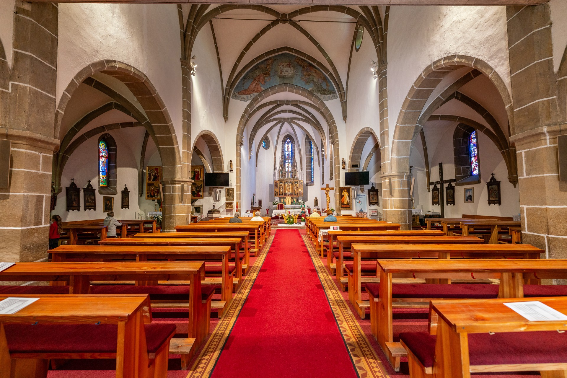 It was built as a parish church for 5 nearby settlements. Firstly, it used to stand alone in the middle of the countryside, then the town of Svätý Mikuláš was developed around it step by step. This imposing sacral building is located in the place where there was an older Romanesque church in the past. When the one-nave Church of St. Nicholas was being built in 1280 – 1300, the Romanesque church was changed to a sacristy and became the oldest part of the whole temple. The church was widened and vaulted in the mid 15th century, the tower was made higher and redesigned in the Late Gothic style. In the same period, the whole temple got fortified along with Pongrác curia and a moat was built around. Later, it underwent a Baroque renovation. After an extensive reconstruction of 1941-43, the church could shine again in its Early Gothic design. The fortication wall was removed and side chapels with beautiful stained-glass windows were built next to it.