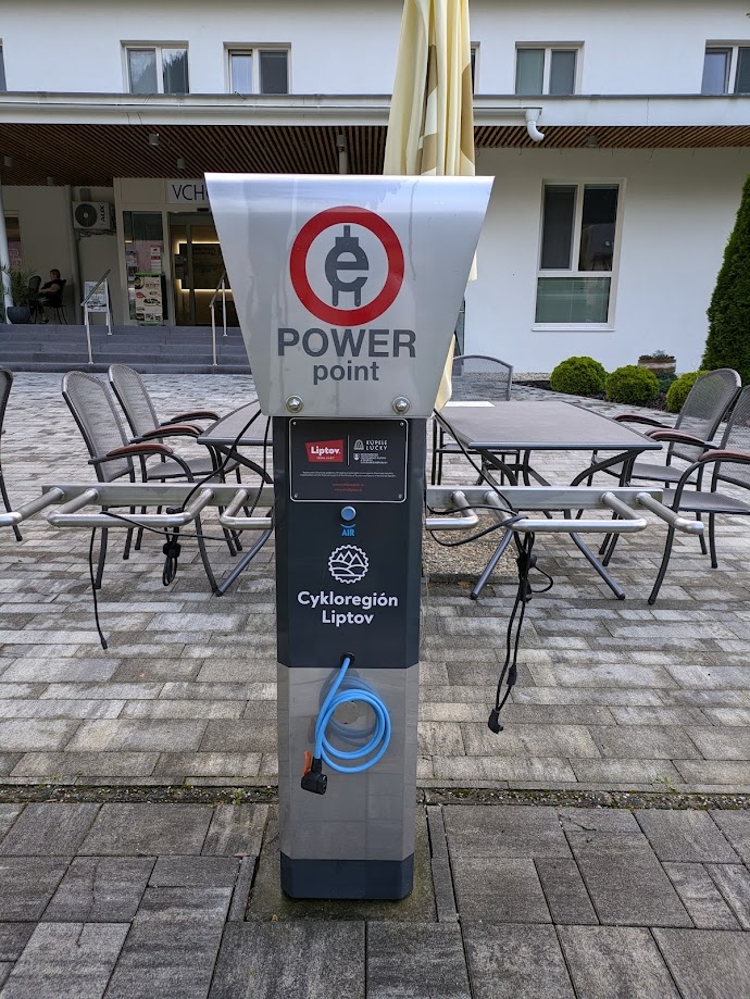 ePOWERpoint e-bike charging station is located close to the main entrance to Aqua Vital Park Lúčky. There is a coffee shop in an immediate vicinity of the station, there also is a restaurant across the street and you can also find a mineral spring with healing water you can drink.