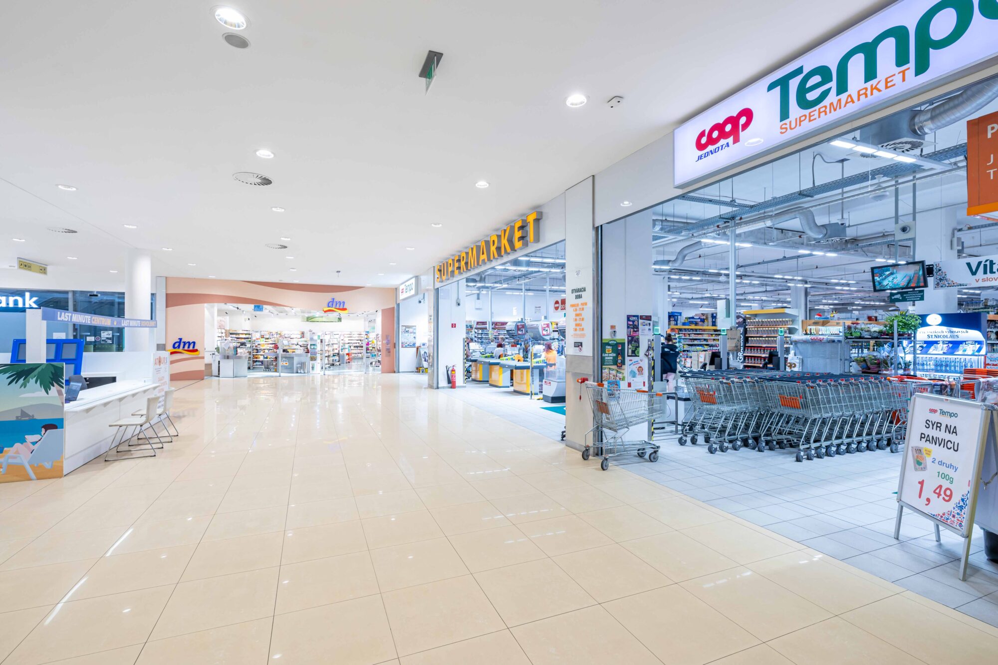Under one roof there are more than 40 brands, underground parking and cozy spaces for checking emails or relaxing with friends over a cup of tea. Thanks to international know-how, the developer has managed to place here also such brands as C&A, COOP Jednota TEMPO supermarket – the largest grocery store in the city, New Yorker, SPORTISIMO, Sport Vision, BEPON, Yves Rocher, BENU pharmacy, TEDi, PEPCO, dm drogerie markt, Alltoys, Robel, Sinsay, House, DEICHMANN, KiK, VICTOR florist, Kreatívne paper shop, Klenoty Trend, ORANGE, banks and many others.