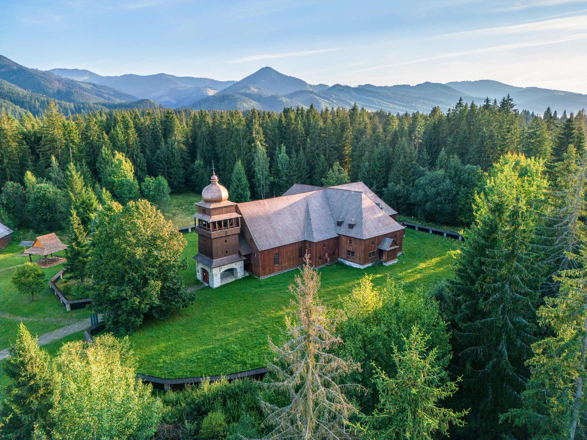 The wooden articled Evangelical church near the village Svätý Kríž is one of the largest wooden buildings in the Central Europe which was moved here from Paludza between 1974 and 1982.