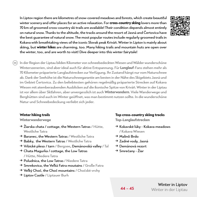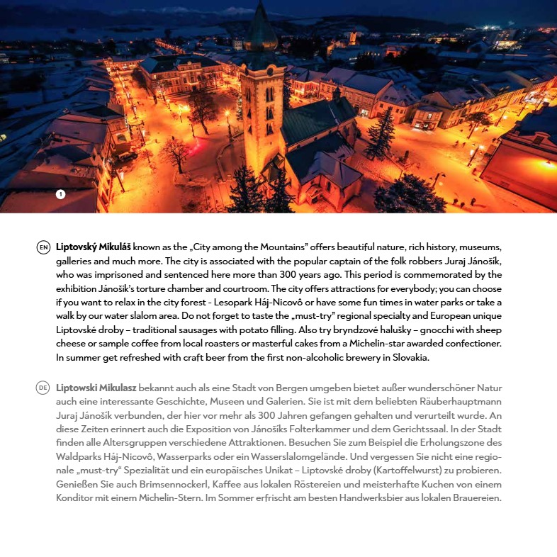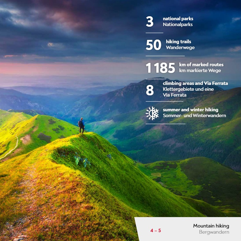 The brochure will guide you through the top places and attractions of the region that must be experienced! It will guide you through the topics: mountain hiking, cycling, water attractions, the natural wealth of the region, gastronomy, cities and history, the offer for families with children and the winter activities that the region offers. The brochure is bilingual – Slovak and Polish.