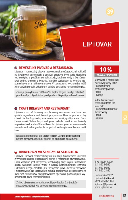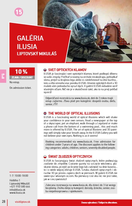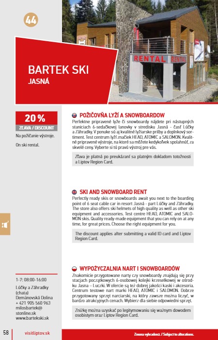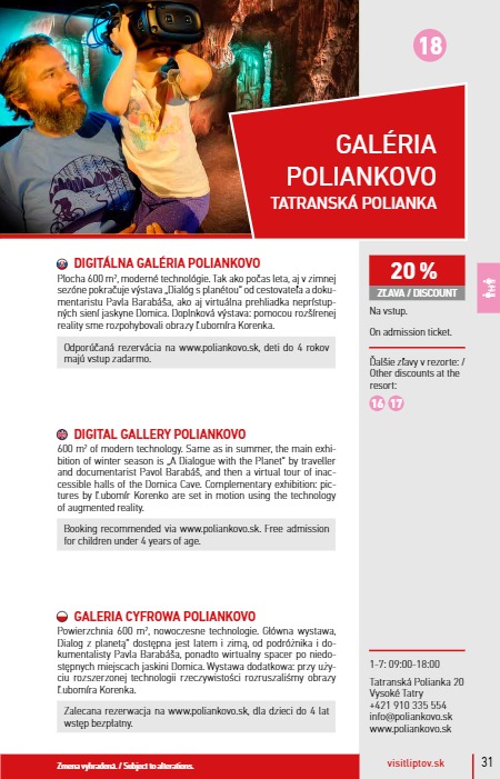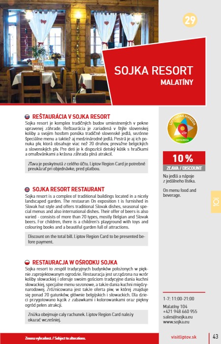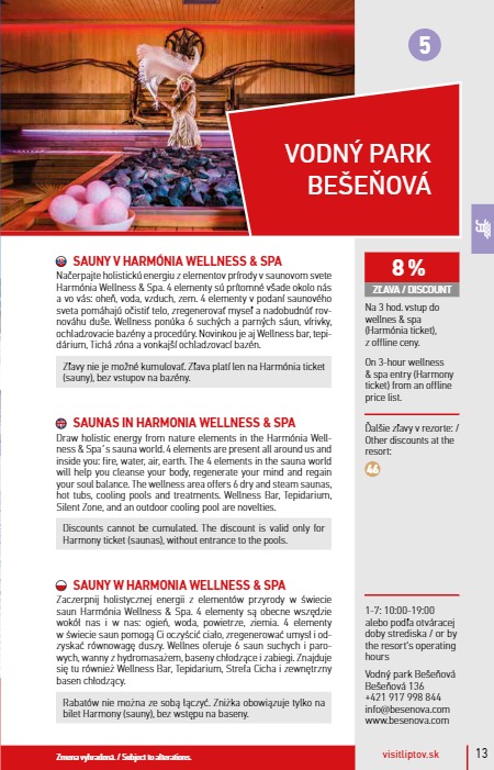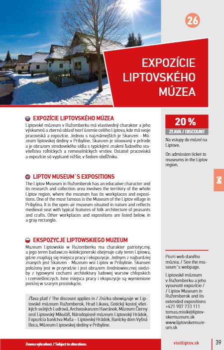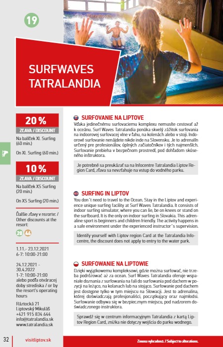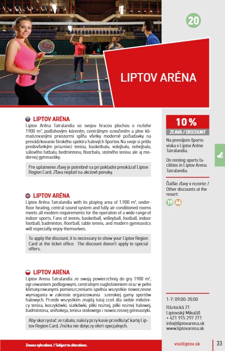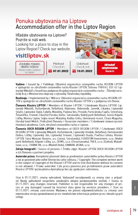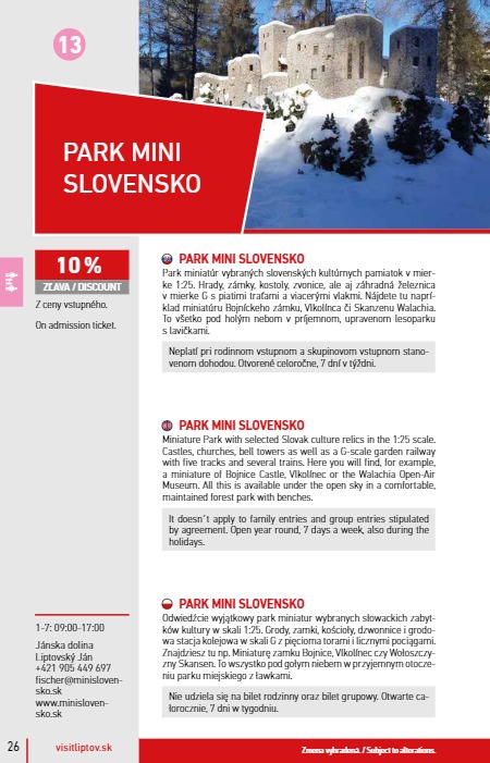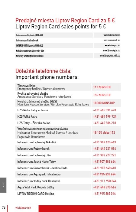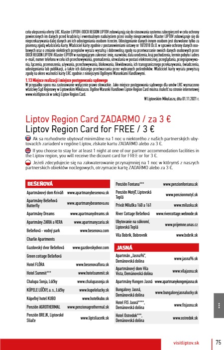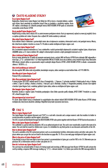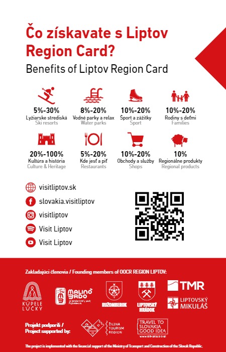 The key from the gateway to the largest outdoor arena and natural playground in Slovakia, which allows you to take advantage of discounts in the biggest attractions, excursions, cultural monuments, adrenaline attractions and other tourism partner facilities in the Liptov region. Enjoy the water parks, take the mountains to the mountains by cable car, experience an adventurous swim, visit museums, discover the secrets of the caves, enjoy a meal or buy something for yourself. With Liptov Region Card in attractive discounts from 5% up to 100%.