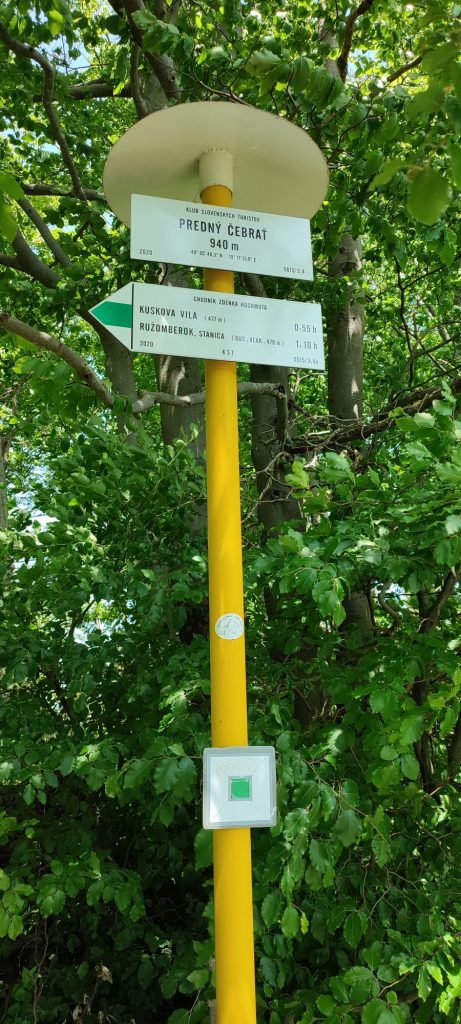 The starting tourist signpost is located next to the road, between the bus and railway stations in Ružomberok. A green marked tourist route leads from the signpost to the top. The markings lead us past the bus station, after which we turn right to a railway crossing for pedestrians. Behind the tracks, it continues left, parallel to the railway line. It passes under a bridge, after which we turn right into the forest in front of apartment buildings. The trail leads alternately between trees and small meadows, past a well to the Hlivovo recreational meadow. It continues left on it. If interested, we can rest in a shelter with seating on the meadow. The trail leads us from Hlivovo to a forest road, from which, however, after about a hundred meters we turn right into the trees. A steeper path through overgrown felling will lead us to the forest. A gently ascending, winding trail then helps us to overcome steep slopes. At the end below the summit, the trail splits several times. We recommend always using the one with the lowest gradient to reach the destination safely.