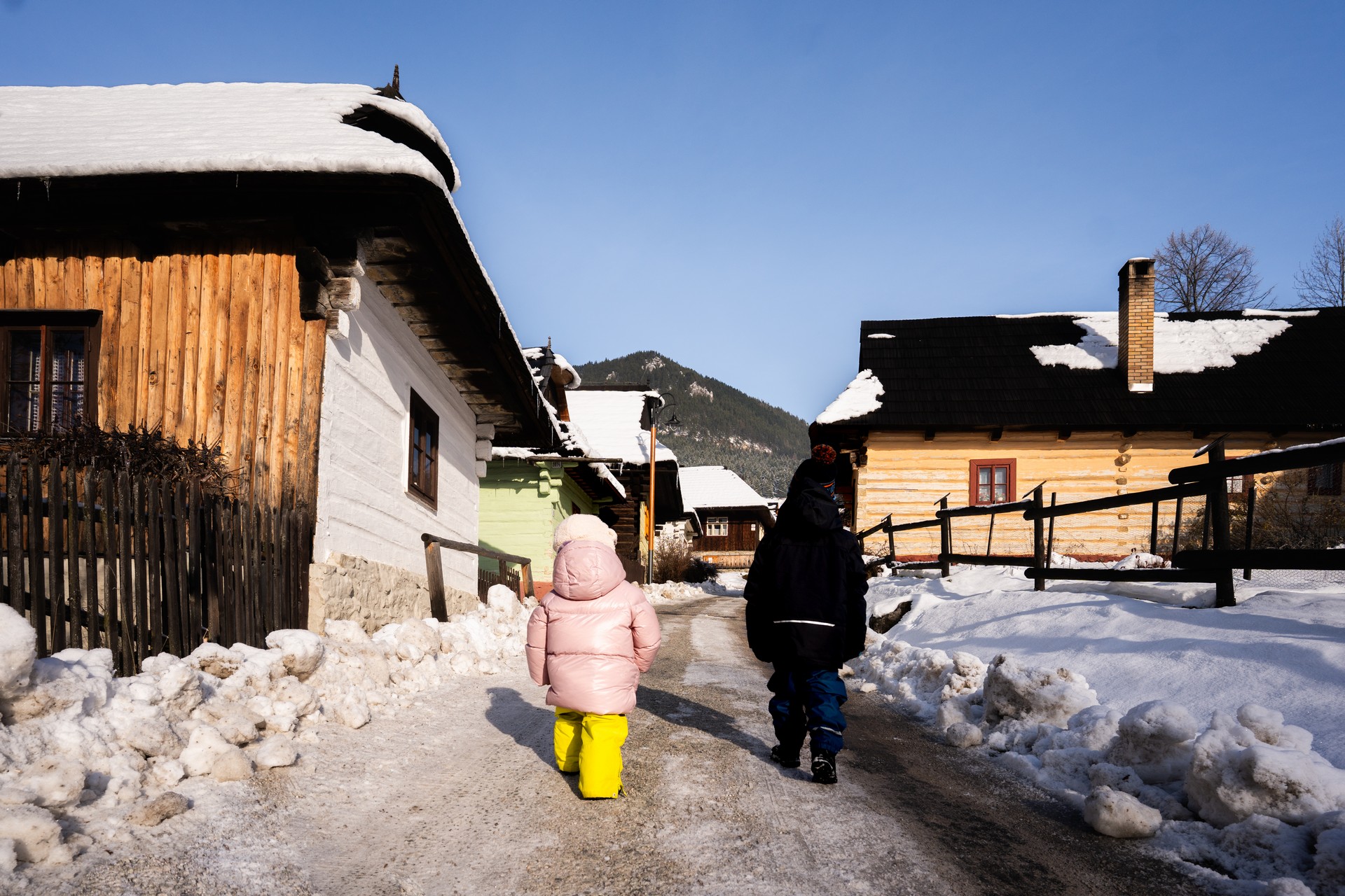 In Hrabovská dolina, you can park comfortably and for free in the parking lot right next to the cable car boarding station. The hike from Hrabov, through Kalvária, Vlkolínske lúky to Vlkolínec (720 m.a.s.l.) takes approximately 1.5 hours. You can make a pleasant walk easier by taking the cable car, which will save you an hour of travel. You can get from Vlkolínec this way again (by cable car or on foot through Vlkolínske luky and Kalvária) or the other way through Trlenská dolina to Biele Potok.