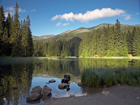 Opis: Jesienna aura wśród świerków i różnobarwnych drzew liściastych sprawia, że to miejsce jest wyjątkowo fotogeniczne. Możemy tu podziwiać jezioro polodowcowe, będące największym naturalnym zbiornikiem wodnym w Niżnych Tatrach. Leży ono na