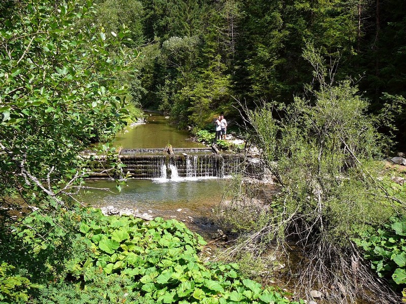zatrzymać się przy drewnianym mostku, obok którego często przepływają dzikie