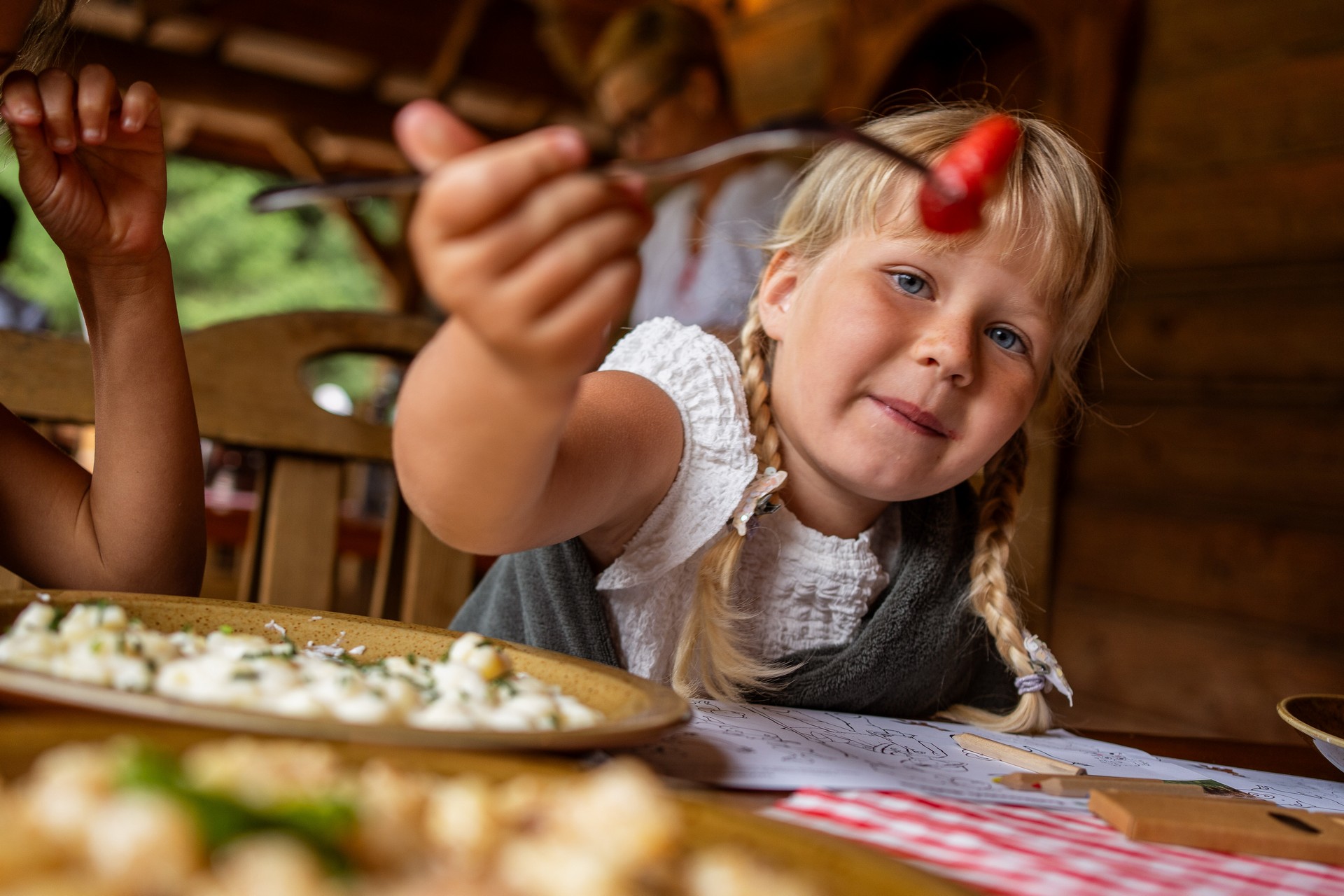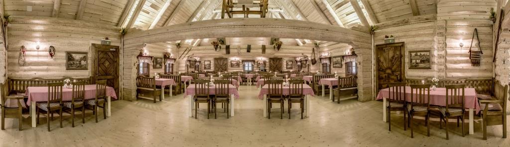 Richtárka znajduje się na terenie przypominającym tradycyjną wioskę – drewniany dom, kaplica, miejsce do przechowywania zboża, studnia, zadaszony kominek lub źródło wody z drewnianym dachem, tradycyjna farma z wieloma zwierzętami domowymi i pasącymi się owcami na łące. W budynku znajduje się domowa piekarnia, sklep z artykułami domowymi oraz stylowy wellness i kąpiel piwna.