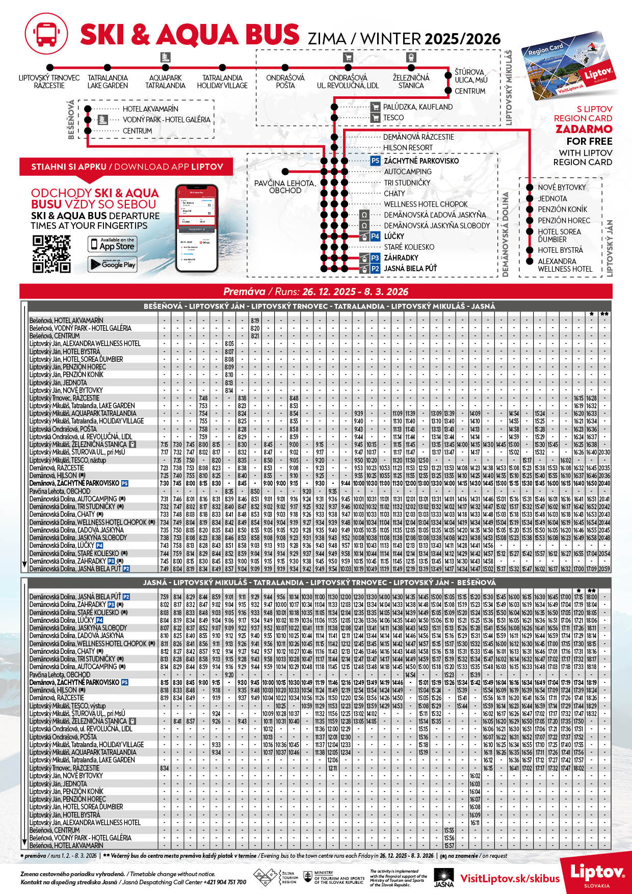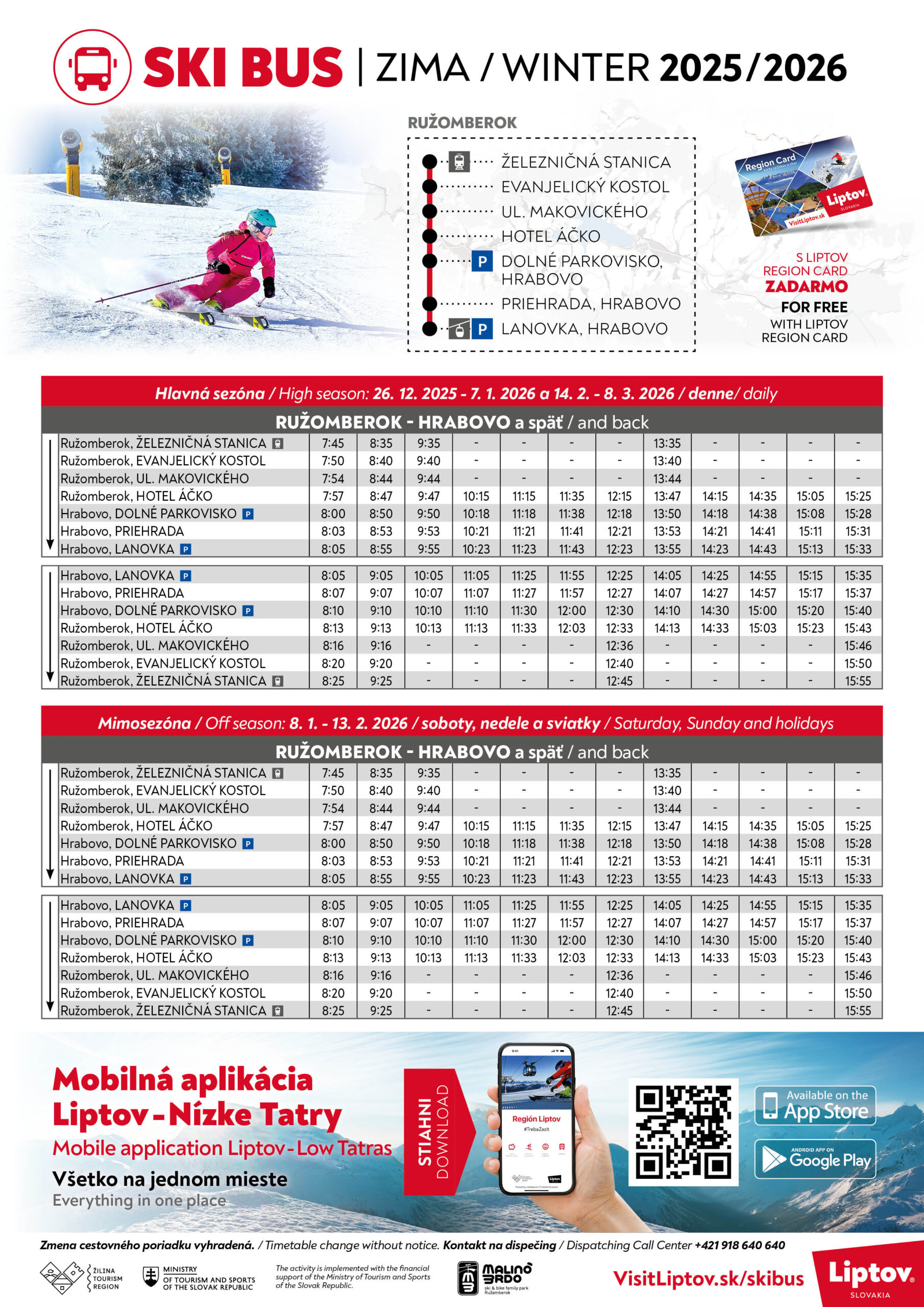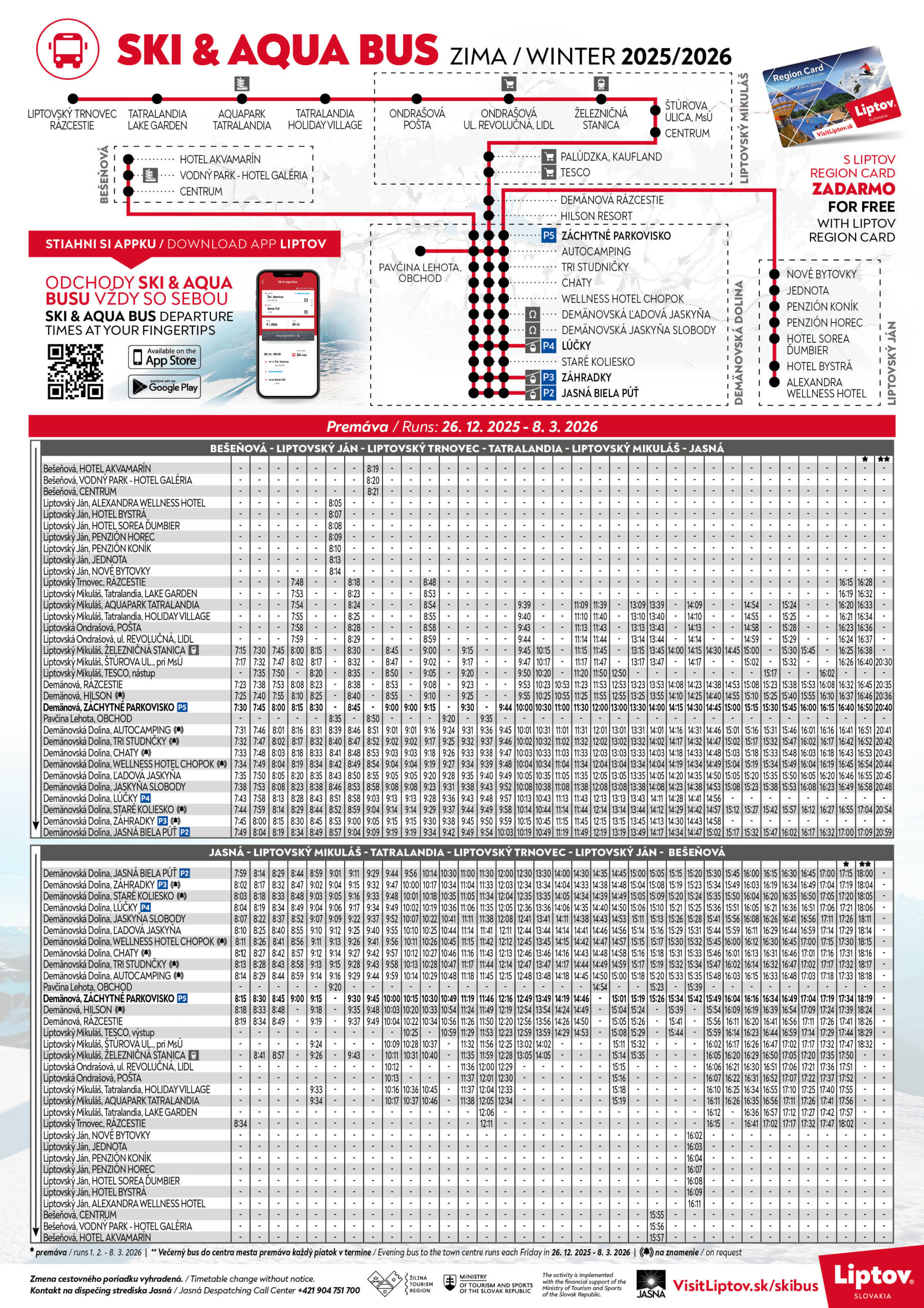 Skibus premáva od 26.12.2025 do 7.1.2026 a potom v mimosezóne 8.1.-13.2.2026.