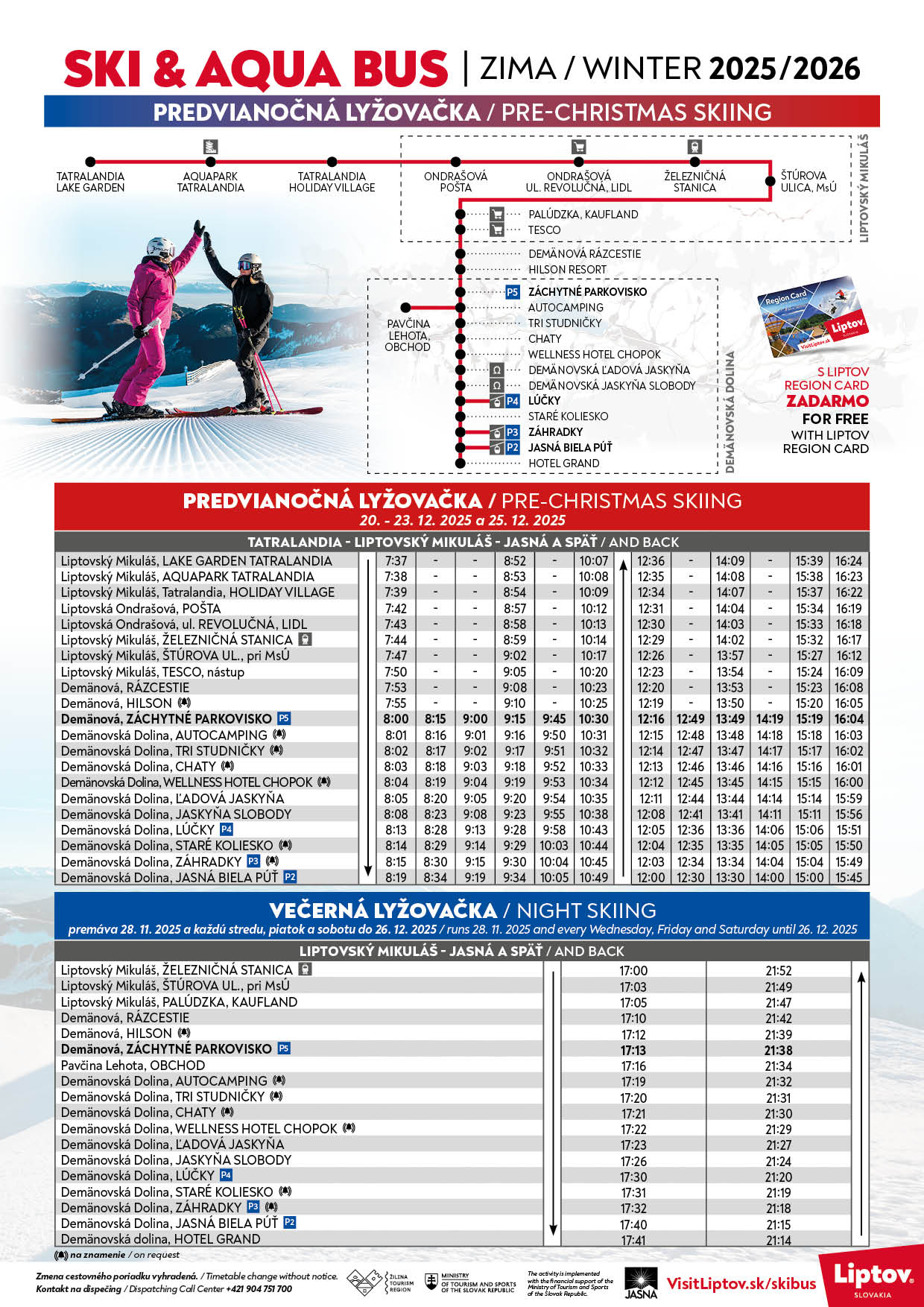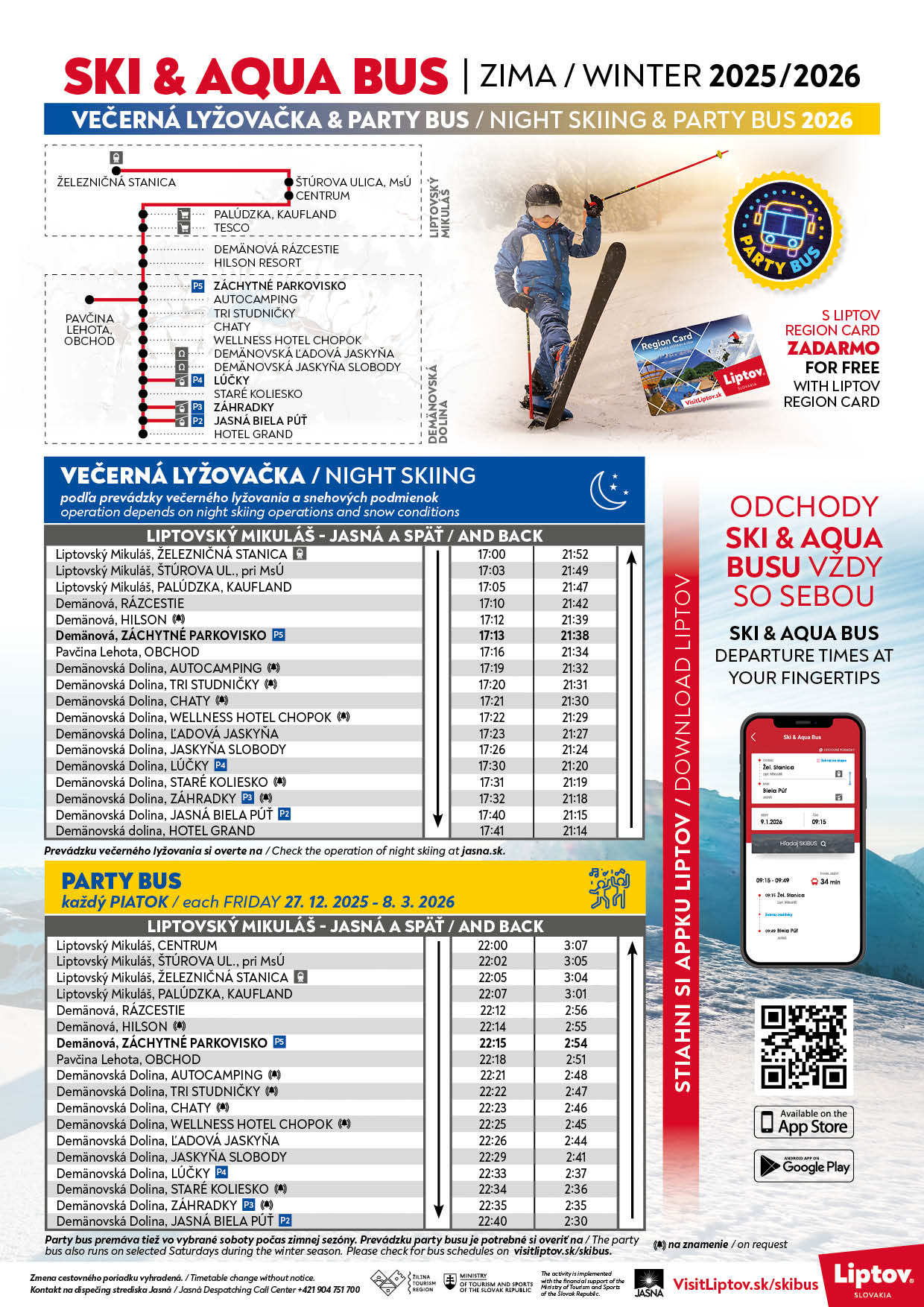 - fPočas prevádzky večerného lyžovania je v premávke skibus na večerné lyžovanie do Jasnej, na osvetlenú zjazdovku ideálnu pre rodiny s deťmi! Večerné lyžovanie v prevádzke už od 28.11.2025!!