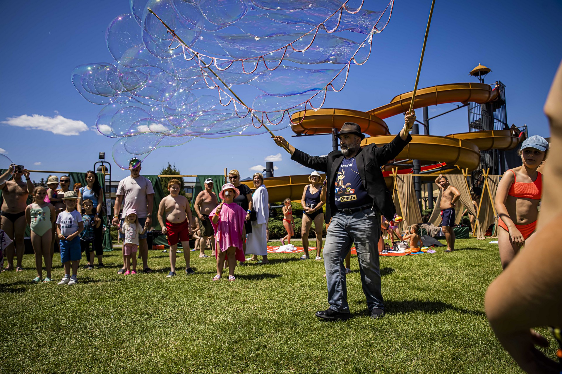Celé podujatie bude moderovať Hugo Sníček, ktorý má pre vás hromadu prekvapení! Okrem zábavného programu na pódiu čakajú na deti aj rôzne súťaže, choduliari či maľovanie na tvár. A k tomu všetkému? Vodné atrakcie, tobogany, bazény a nezabudnuteľné letné zážitky!