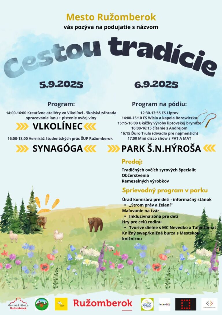 Mesto Ružomberok vás pozýva na podujatie s názvom Cestou tradície. Projekt Cestou tradície vznikol ako súčasť cezhraničnej spolupráce Slovenska a Poľska a jeho ambíciou je nielen uchovávať kultúrne dedičstvo, ale aj prinášať ho novým generáciám modernou a zážitkovou formou.