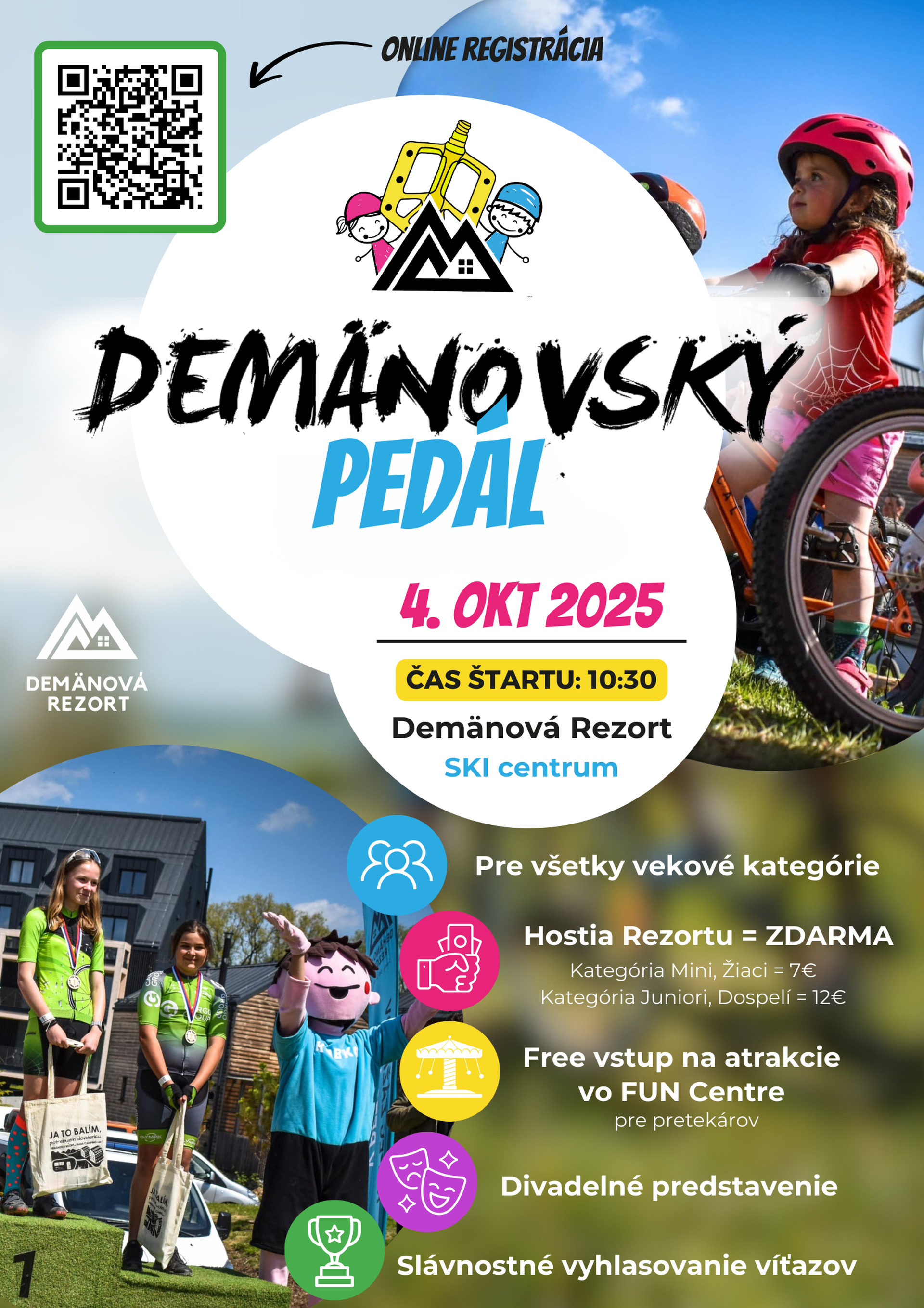 Vlastný a originálny cyklopretek rezortu Demänovský pedál je určený hlavne pre rodinky s deťmi. Súťažiť môže každý, kto má chuť a vie bicyklovať! Amatéri ale aj profi cyklisti, deti aj dospelí.