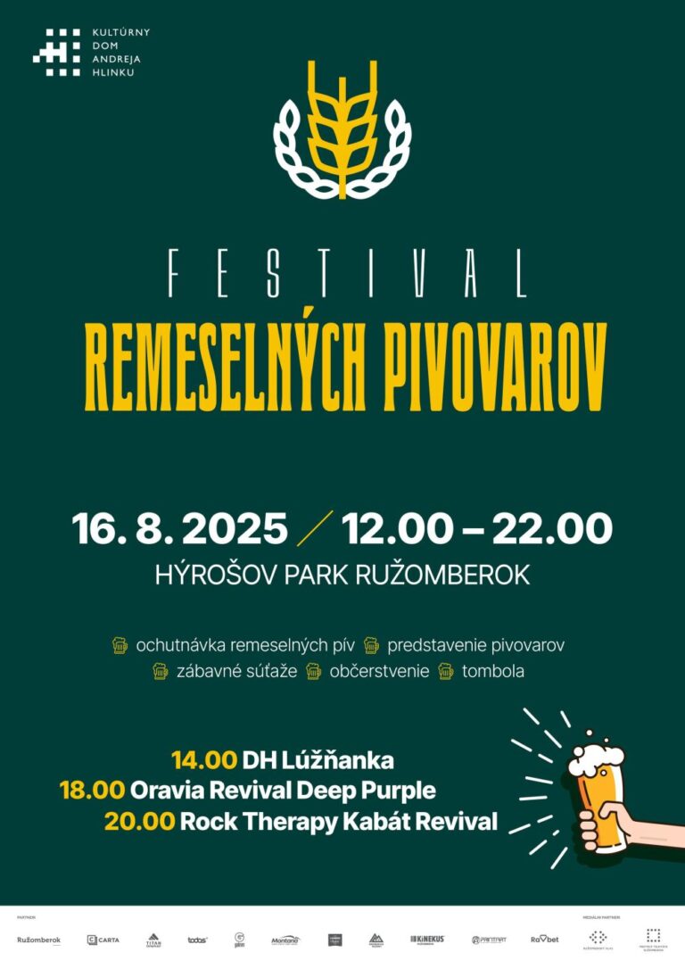 Už druhýkrát sa v Parku Š. N. Hýroša v Ružomberku stretnú milovníci remeselného piva, dobrej muziky a letnej atmosféry. Teší sa na vás 7 skvelých remeselných pivovarov, ktoré vám načapujú to najlepšie zo svojich pivných pokladov. Chýbať nebude ani chutné občerstvenie – pripravené budú stánky s jedlom, aby ste nezostali len pri pive. Tešiť sa môžete aj na zábavné súťaže a tombolu.