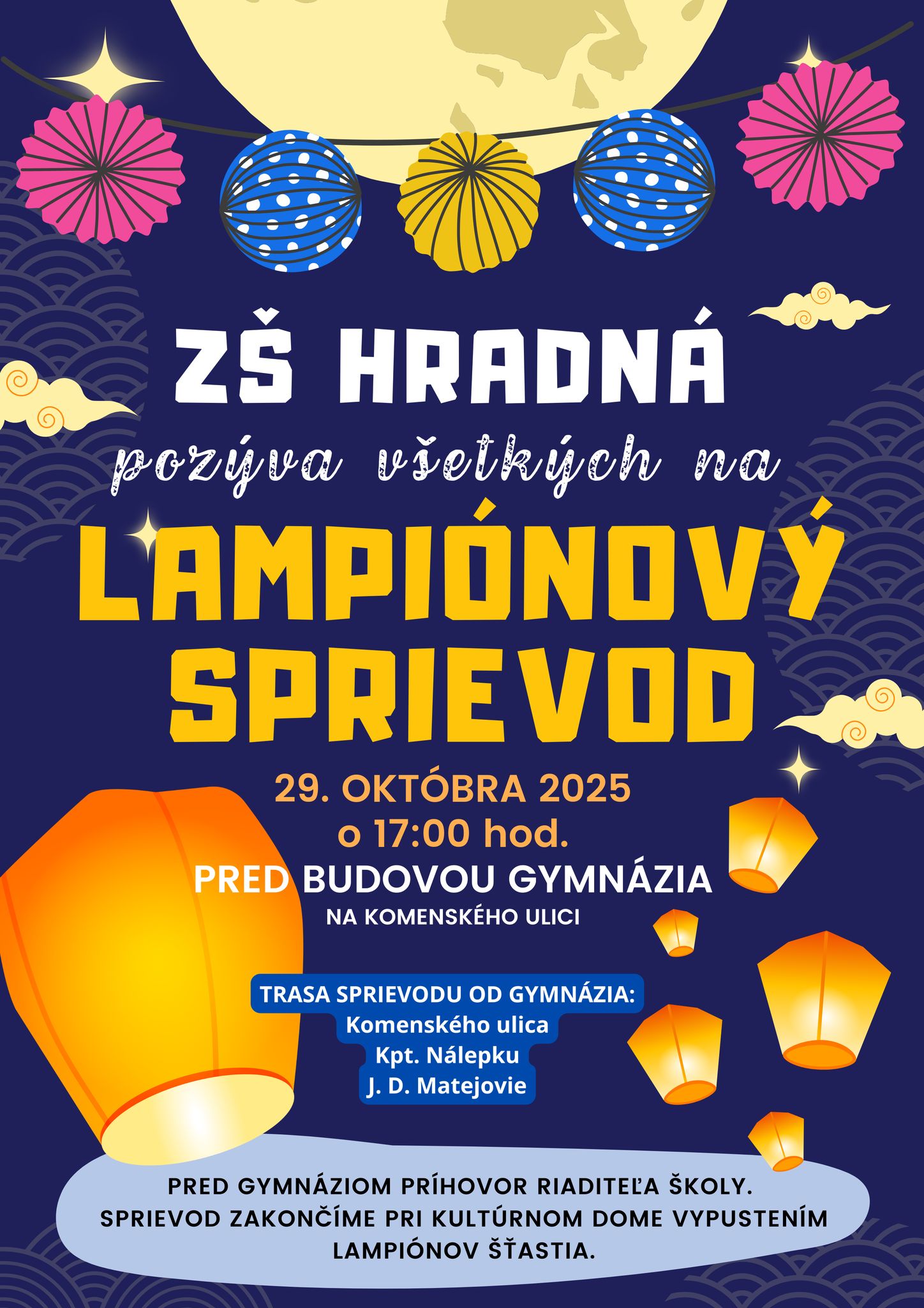 Lampióny sa rozžiaria aj v Liptovskom Hrádku. Príďte pred budovu gymnázia na Komenského ulici a vydajte sa na lampiónový sprievod na trase: gymnázium – Komenského ulica – Kp.t. Nálepku – J. D. Matejovie. Sprievod sa zakončí pri kultúrnom dome vypustením lampiónov šťastia.