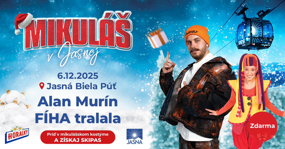 Do Jasnej prinesie svoju typickú atmosféru – uvoľnenú, melodickú a zároveň nabitú emóciami. Tešiť sa môžete na známe hity, nové piesne aj momenty, ktoré si budete pospevovať ešte cestou domov zo svahu. - FÍHA TRALALA – Pesničková hviezda pre deti, ktorá rozžiari úsmevy všetkých najmenších! Na pódiu ožíva svet rozprávky – s kamarátmi, prekvapeniami a pesničkami, ktoré deti poznajú z videí a koncertov. Každá jej show je zážitok, ktorý zahreje srdce a rozžiari očká. V Jasnej sa postará o tú najkrajšiu mikulášsku atmosféru pre rodiny s deťmi – so zimnou náladou, kúzlom a poriadnou dávkou detskej radosti.