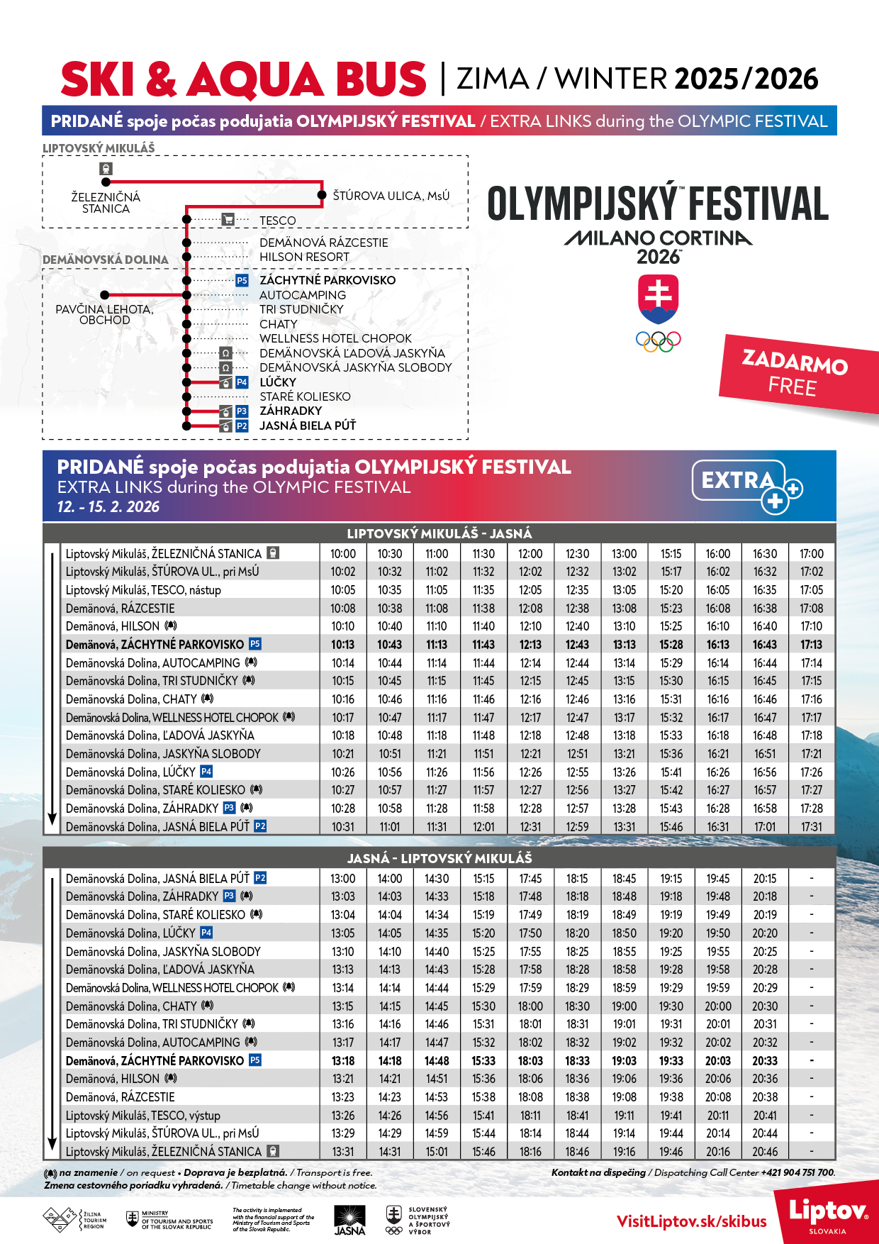 Priamo do Jasnej vás vyvezie bezplatný skibus, s pridanými spojmi počas podujatia.
