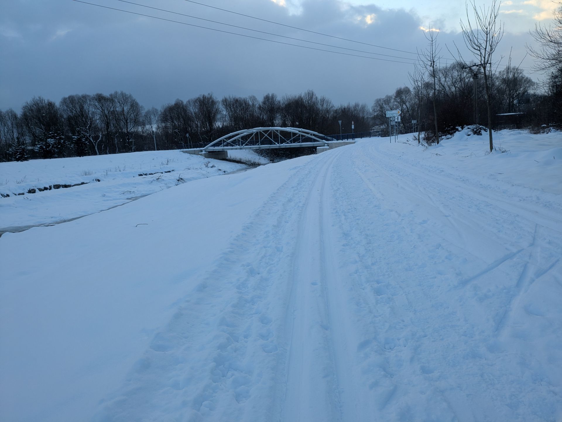 Vzhľadom na multifunkčné využitie cyklochodníka je na trati značné množstvo chodcov, čo nepriaznivo vplýva na kvalitu stopy. Vzhľadom na menšiu šírku je trať upravovaná len skútrom a je vhodnejšia pre klasickú techniku bežkovania. Trasa v blízkosti Iľanovského mosta, necelý kilometer po jej začiatku, križuje cestu. V tomto mieste sa netreba otočiť, ale po vyzutí lyží a prenesení ich cez cestu je možné pokračovať ďalej až do Okoličného.