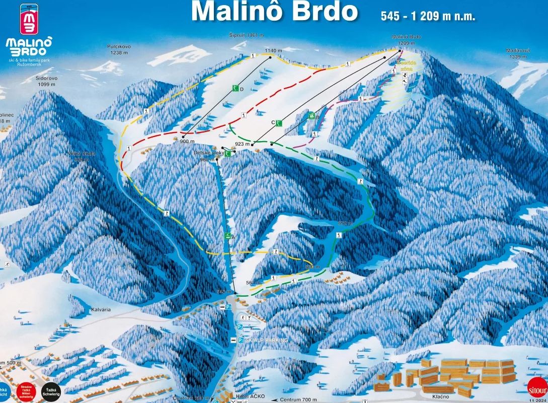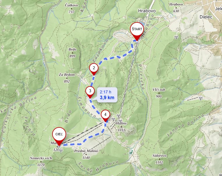 Vyznačená trasa pre skialpinistov začína spolu s ostatnými trasami pri údolnej stanici kabínkovej lanovky v Hrabove a vedie celou dĺžkou po hlavnej lyžiarskej trati až na vrchol sedačkovej lanovky Malinné vo výške 1209 m n. m. Trasa vedie strmšou hlavnou zjazdovkou, pričom prechádza priamo cez lyžiarske stredisko, kde je možné občerstviť sa v Hoteli Malina, Apres Ski Bare alebo bufete Daria.