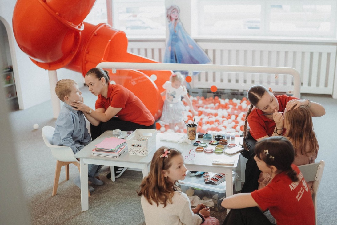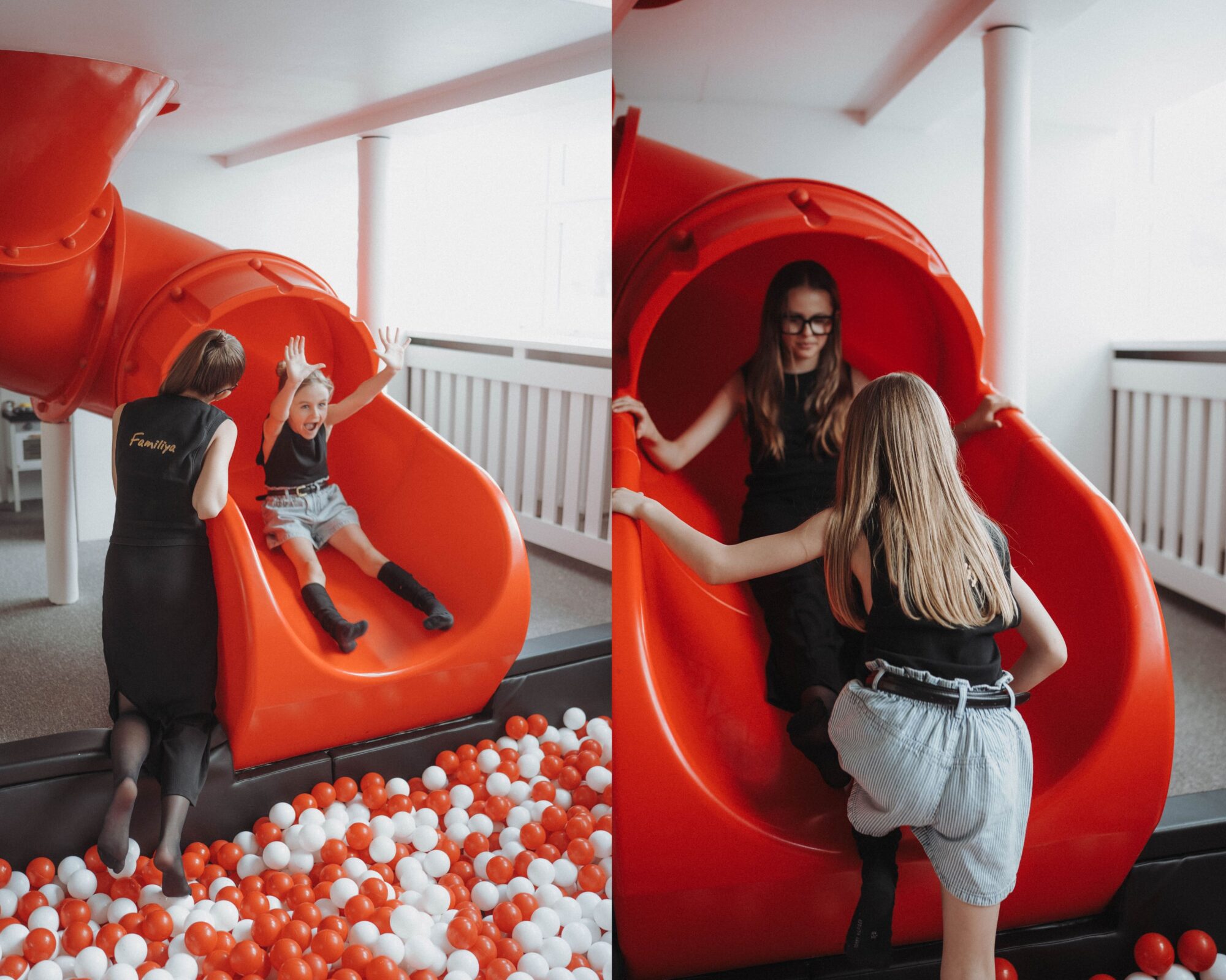 - Veľký detský kútik – bezpečný priestor s veľkou šmýkačkou, plný hier a kreatívnych aktivít.