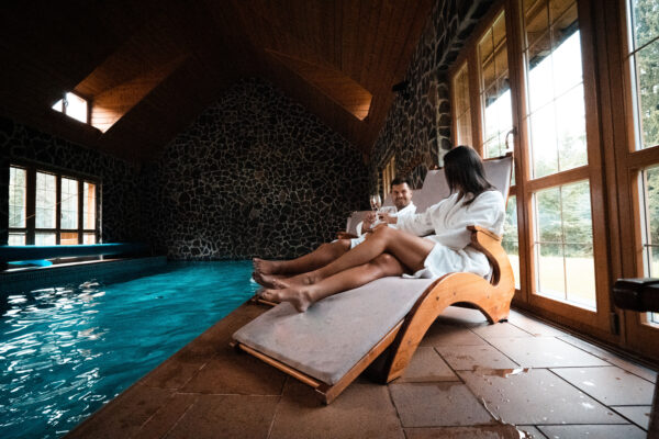 V Relax centre nájdete bazén s protiprúdom s výhľadom na potok, interiérovú vírivku, suchú a parnú saunu či vonkajšiu drevenú kaďu pre dokonalú romantickú atmosféru.