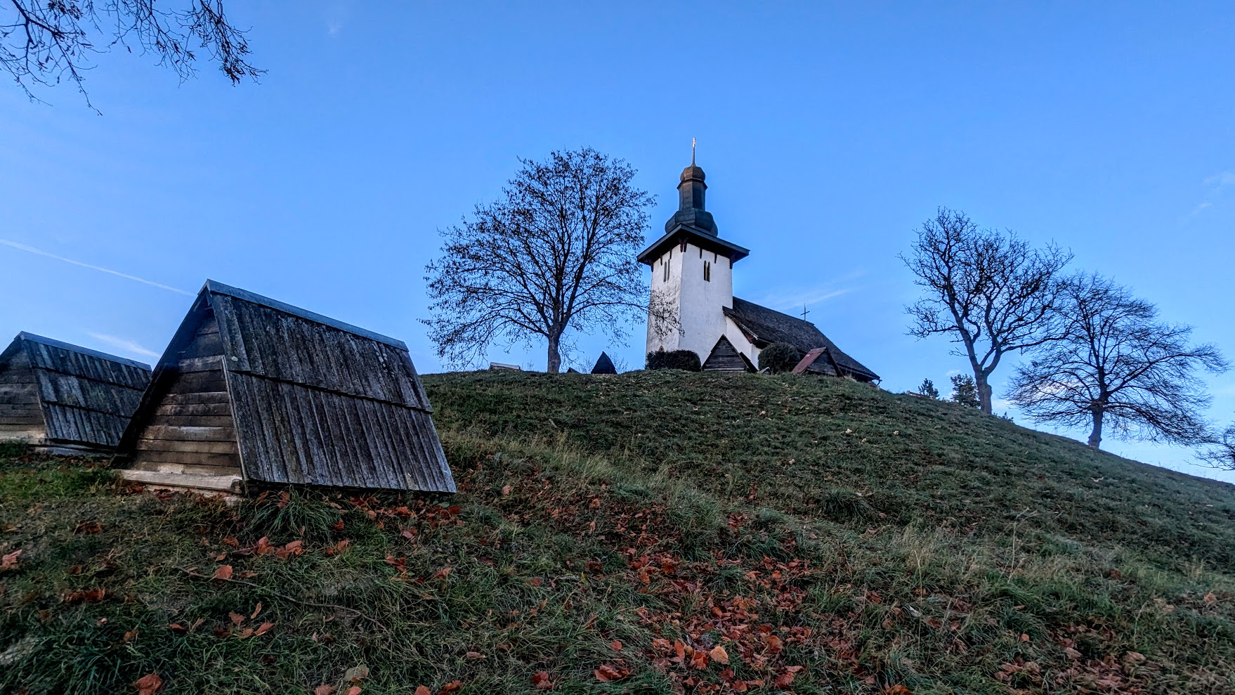 Keď už zavítate na ku kostolíku, odporúčame krátku prechádzku na výhliadku nad kostolom. Po asi 300 metroch kráčania po poľnej ceste zabočíte doľava a prudkým stúpaním sa dostanete k drevenému krížu, od neho budete pokračovať k lavičke s mapou, ktorá označuje kopce, na ktoré máte možnosť vidieť.