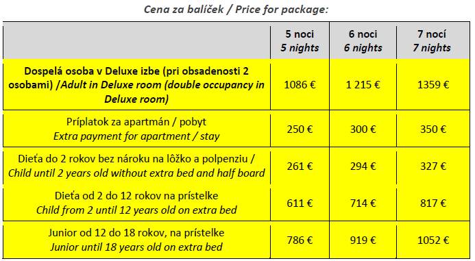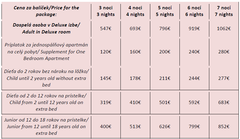 - Ubytovanie na 3,4,5, 6 alebo 7 nocí v Deluxe izbe alebo jednospálňovom apartmáne