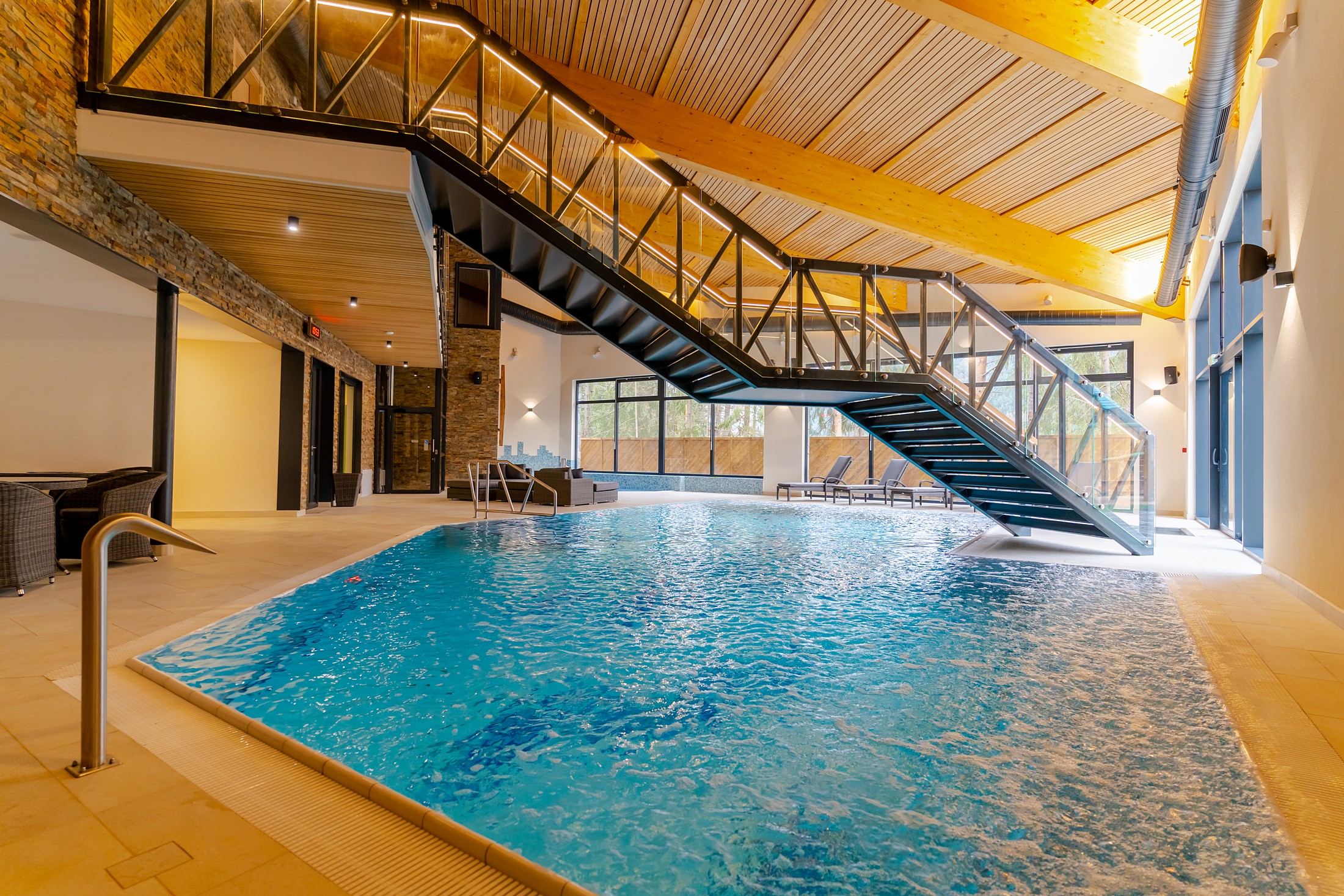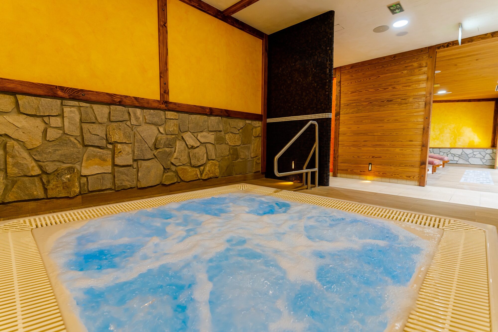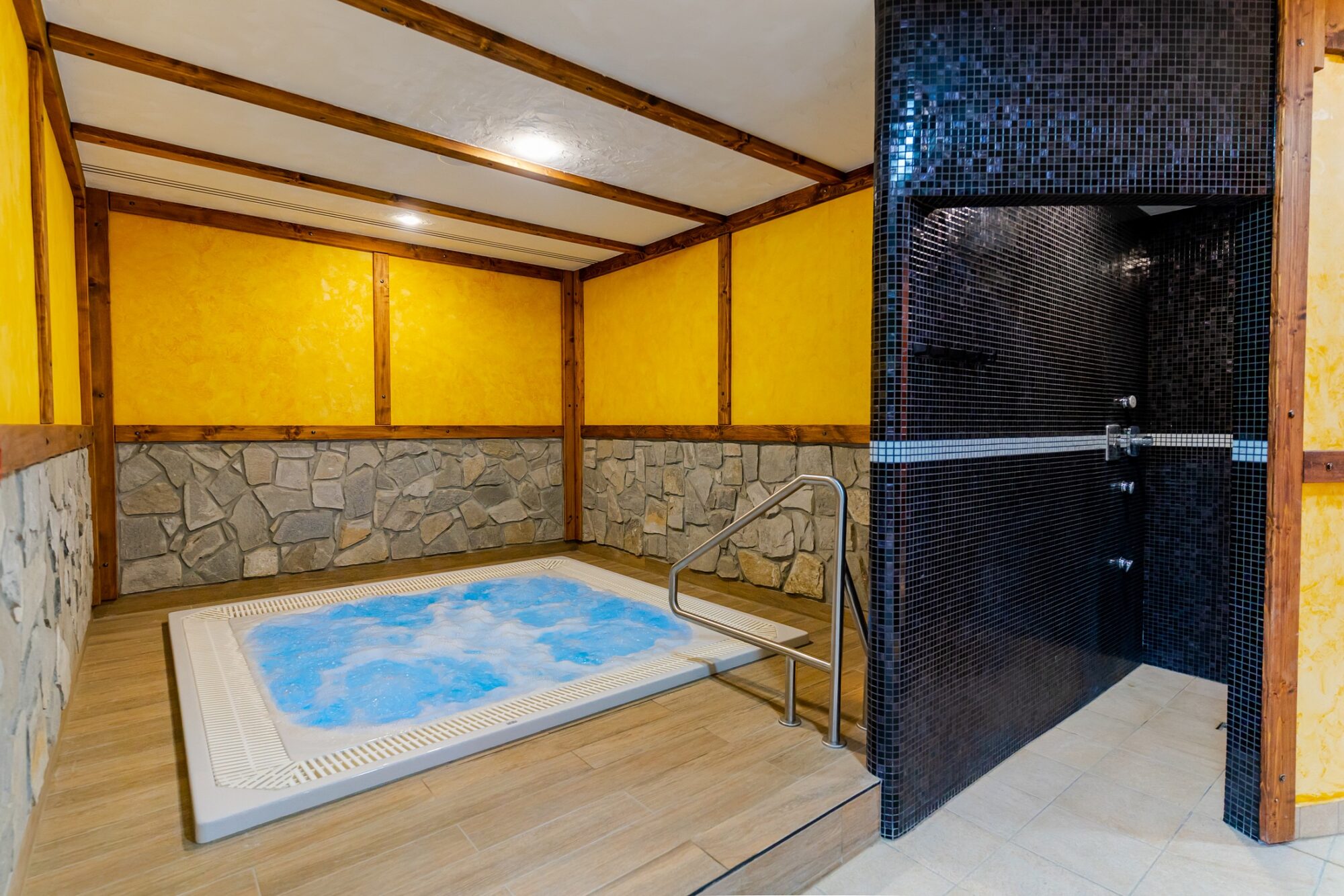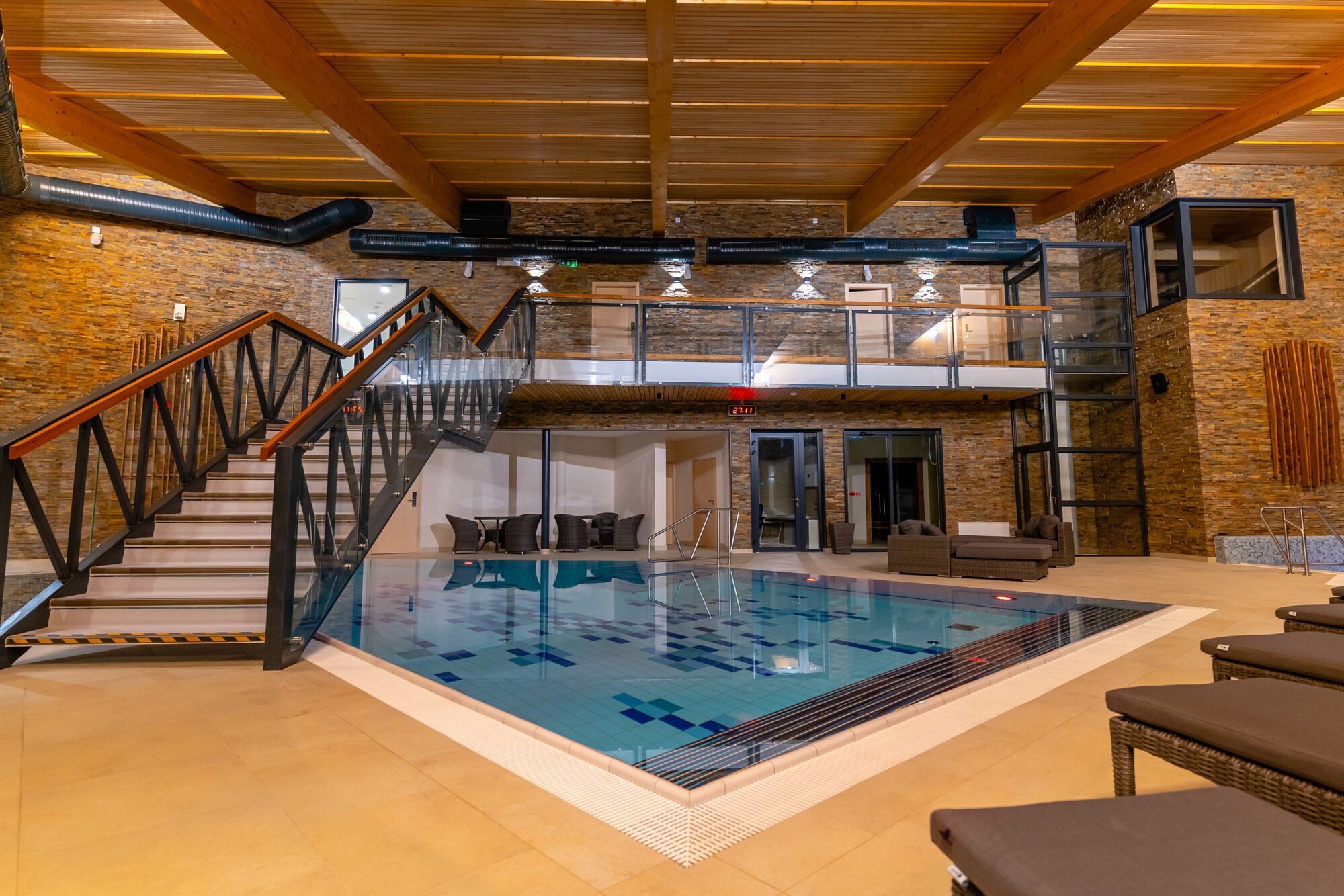 - Súčasťou hotelového wellness je krytý bazén s hĺbkou 1,60m a detský bazénik s hĺbkou 0,40m. Súčasťou plaveckého bazéna sú aj podvodné masážne kreslá, chŕlič vody vytvárajúci protiprúd ideálne pre plavcov.